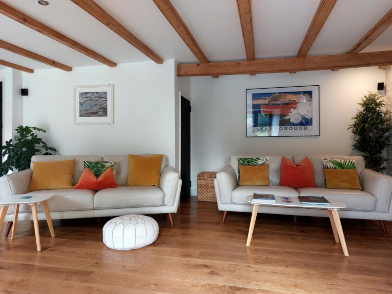 Sunnyside Barn Stylish and contemporary chalk barn with spacious, bright and airy rooms, featuring a large private garden and patio with dining area and sunbeds. Sleeps 4 adults + 2 children + baby (travel cot). Well behaved pets welcome. Built in 1803, Sunnyside Barn in Bempton has been refurbished to a very high standard and retains many of its original features and charm. Much of the house has solid oak flooring and beams with exposed ‘A’ frame and chalk walls. The bedrooms and lounge have floor to ceiling oak French doors for that ‘living inside/outside’ feeling. The barn is a stone’s throw away from the village pub. There is also a useful corner shop /post office and antique shop. The Barn is situated in the quiet village of Bempton in the East Riding of Yorkshire and is an ideal location for visiting the surrounding country side, spectacular beaches and coastline. You can stroll out direct from the house on many circular walks. Cliff-top and coastal paths can be easily accessed via a one mile walk, cycle or drive to the RSPCA bird sanctuary at Bempton’s towering chalk cliffs for breath taking views. Conveniently placed on the tip of the Yorkshire Wolds for Flamborough head and the lighthouse, North and South Landing and numerous secret smugglers caves and bays for bird and seal watching. Further local attractions include Sewerby Park, Dane’s Dyke, Bridlington Bay and Harbour and Royal Yorkshire Yacht Club sailing events and pleasure cruises of all shapes and sizes. A week’s full of attractions are all a walk, cycle ride, or short drive away. Bempton has a small railway station and bus routes. There is off-road parking spaces for two cars opposite on the gravelled area.